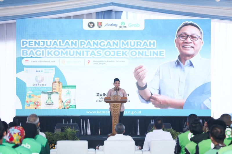 “Melalui kegiatan ini, total omsetnya Rp45,7 miliar,” kata Taj Yasin dalam kegiatan ‘Penjualan Pangan Murah bagi Komunitas Ojek Online’ bersama Menteri Koordinator Bidang Pangan, Zulkifli Hasan, di Gudang Perum Bulog, Pedurungan, Kota Semarang, Jumat 19 Desember 2025.